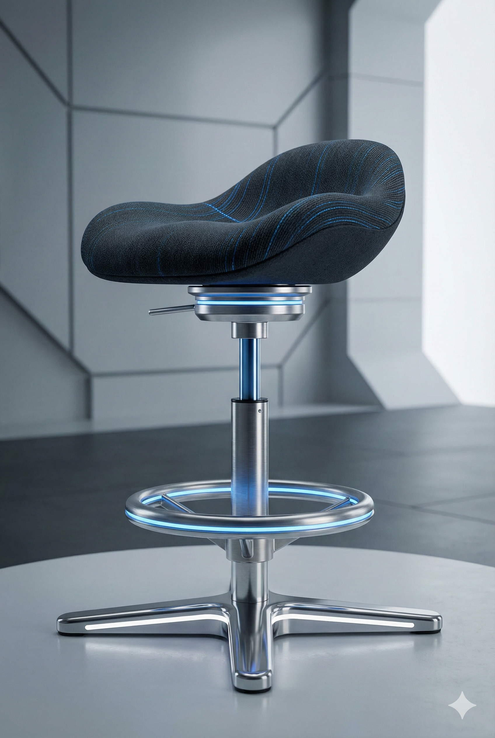 Adjustable height revolving stool with cushioned seat — suitable for doctors and nurses during examinations and procedures.