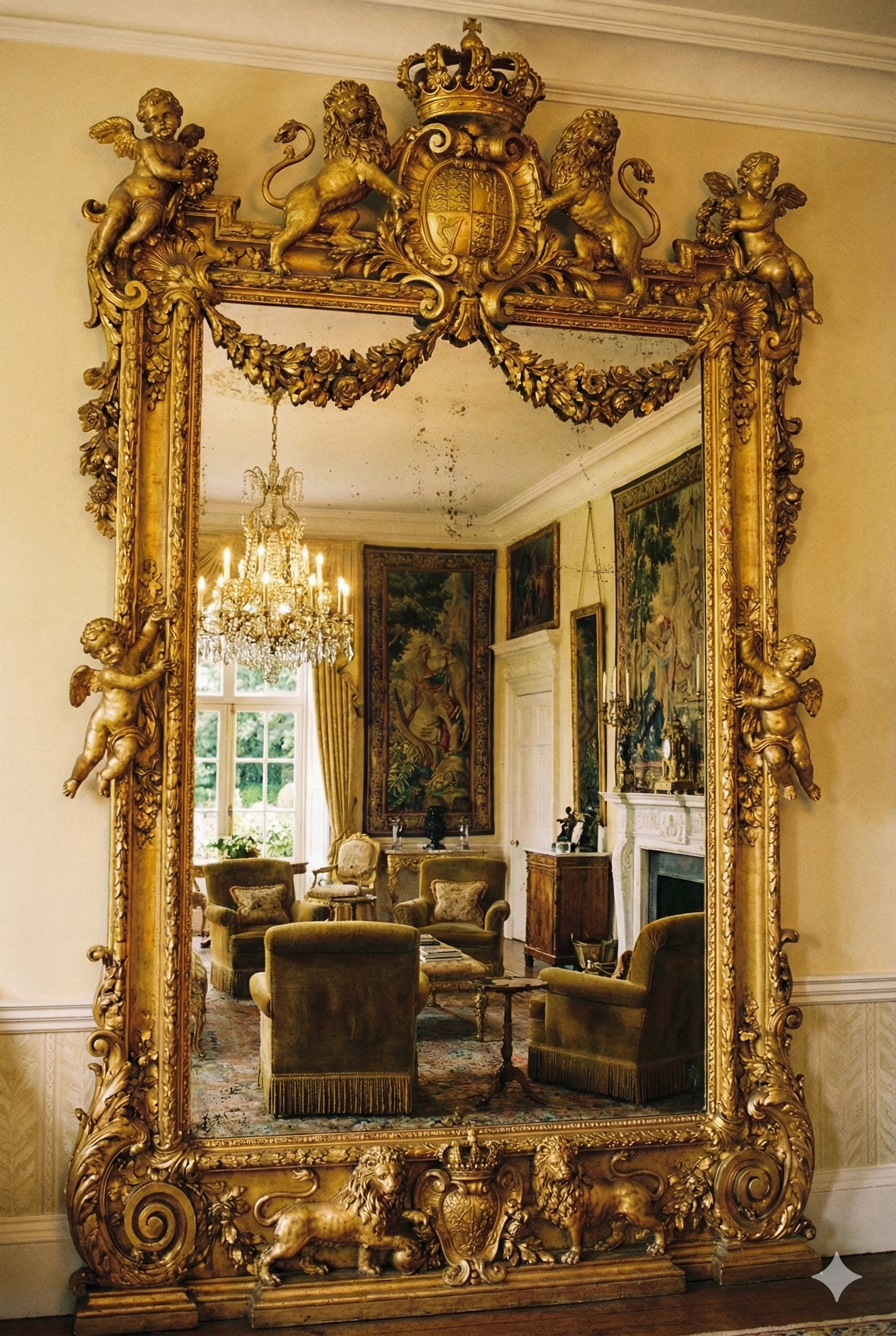 Wall mirror with gilded carvings.